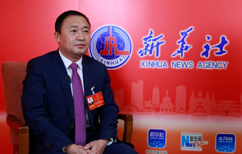 鄂尔多斯市委副书记、代市长于海宇做客新华访谈。新华网发 (侯乐 摄)